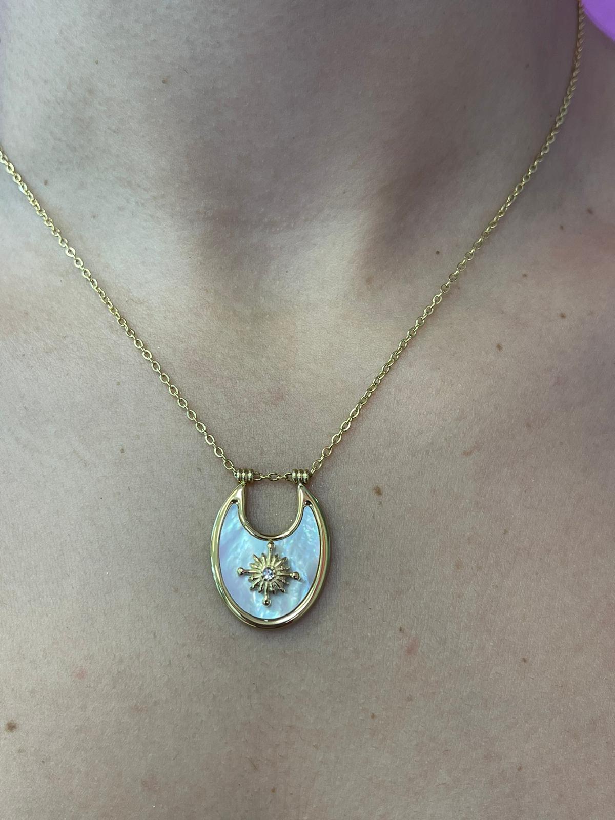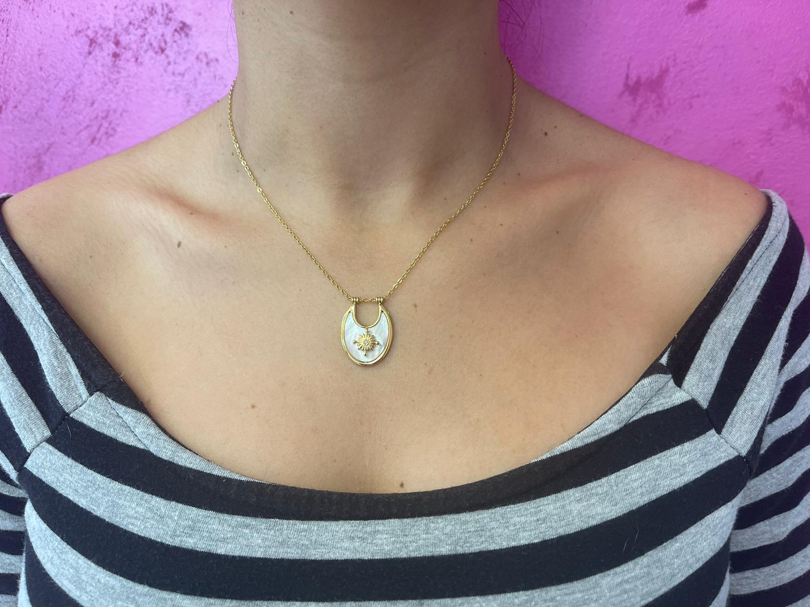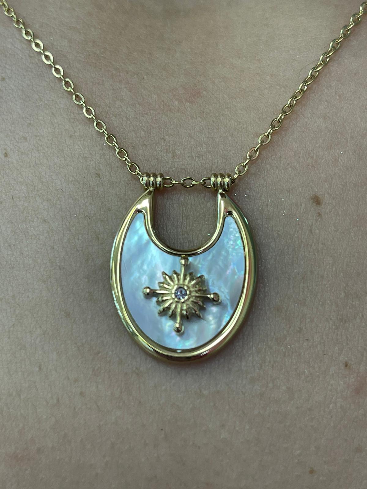 Collana dorata con medaglione al centro in acciaio inox304L, ipoallergenico.