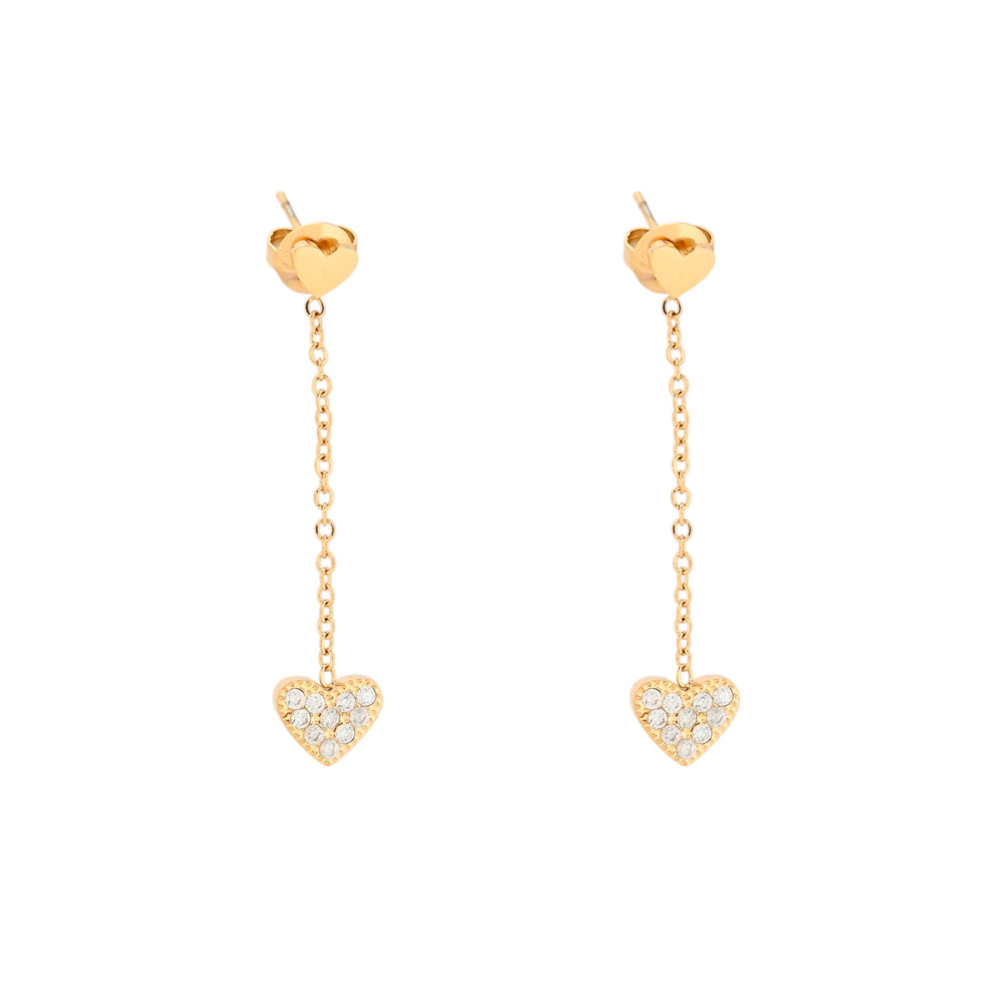 Orecchini in acciaio inossidabile con cuori e zirconi.