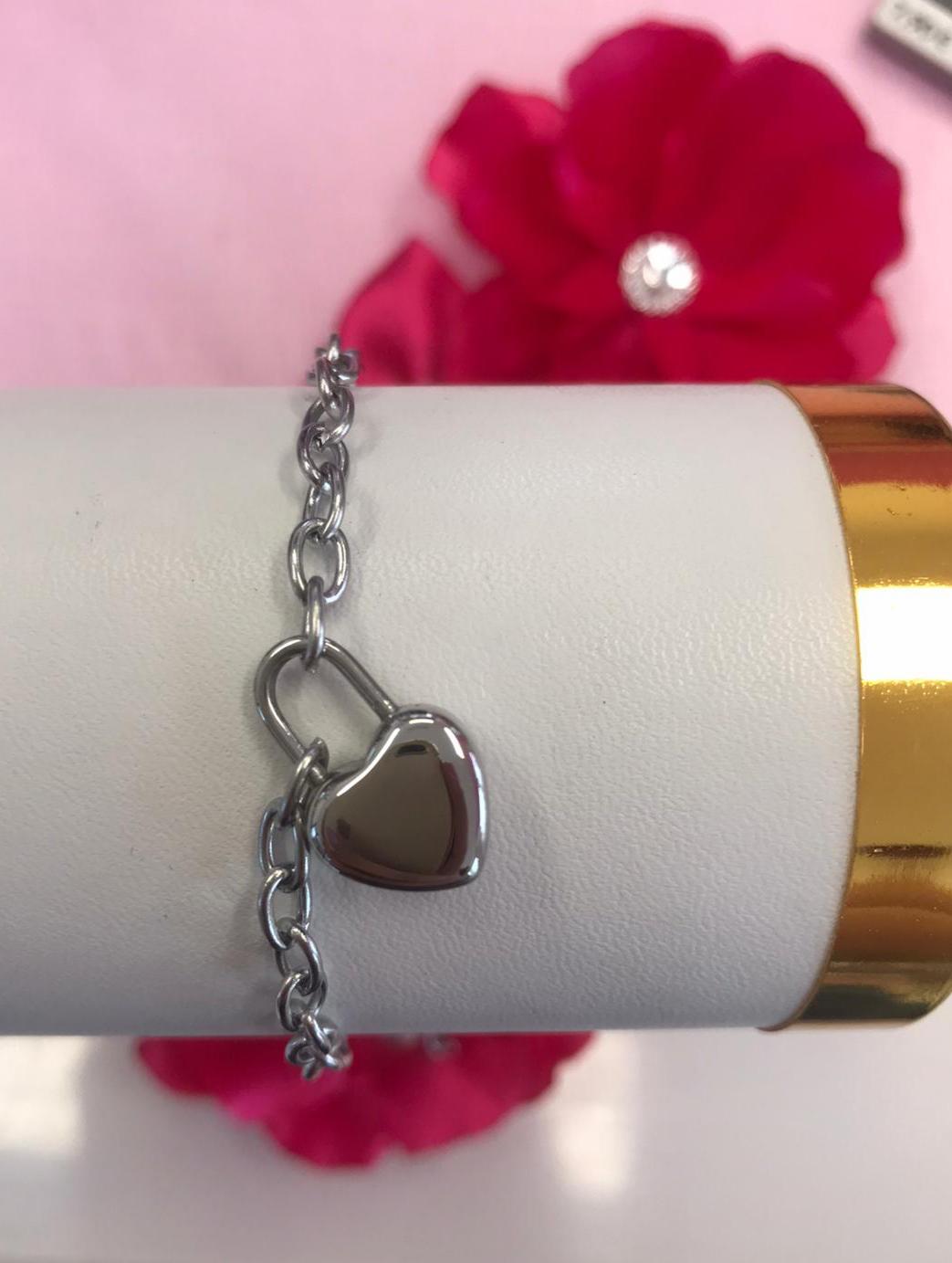 Cavigliera/bracciale argentato con lucchetto e cuore.