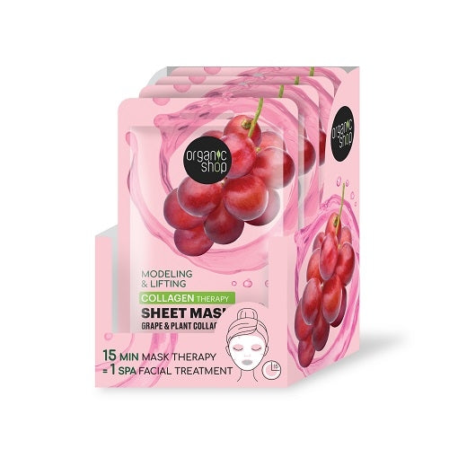 La Maschera Viso Liftante in Tessuto al Collagene di Organic Shop è un trattamento liftante e rassodante che dona idratazione intensa, aumentando l'elasticità cutanea.