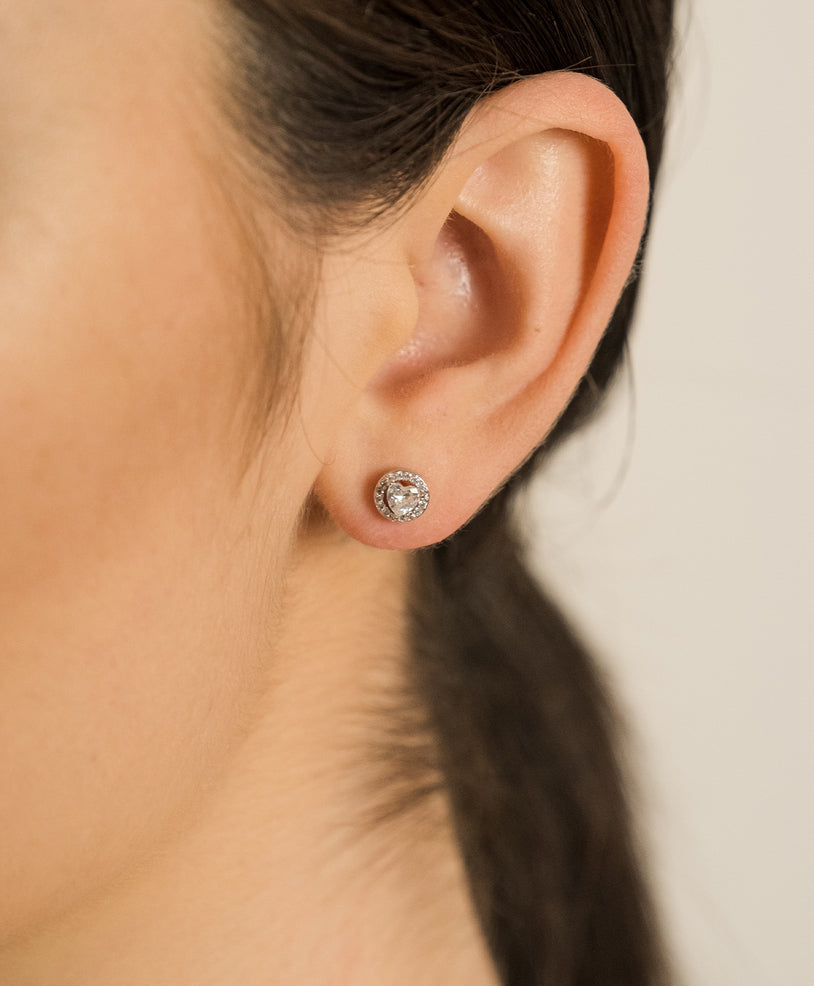 Il punto di forza di questi orecchini risiede nelle pietre utilizzate: zirconi di alta qualità. Questi zirconi catturano e riflettono la luce in modo straordinario, creando un effetto brillante che esalta sia il gioiello che il viso di chi li indossa. La pietra centrale ha una forma di cuore di 4,4 mm, circondata da pietre più piccole della corona di 1 mm, una combinazione che dona un aspetto unico e affascinante.
