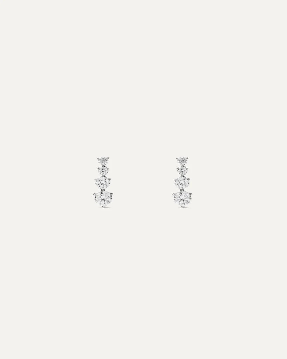 Questi orecchini sono impreziositi da zirconi di alta qualità, che creano un’effetto scintillante grazie alla loro lucentezza. Le pietre sono disposte strategicamente per riflettere la luce in modo affascinante, facendo brillare il volto di chi indossa questi gioielli.