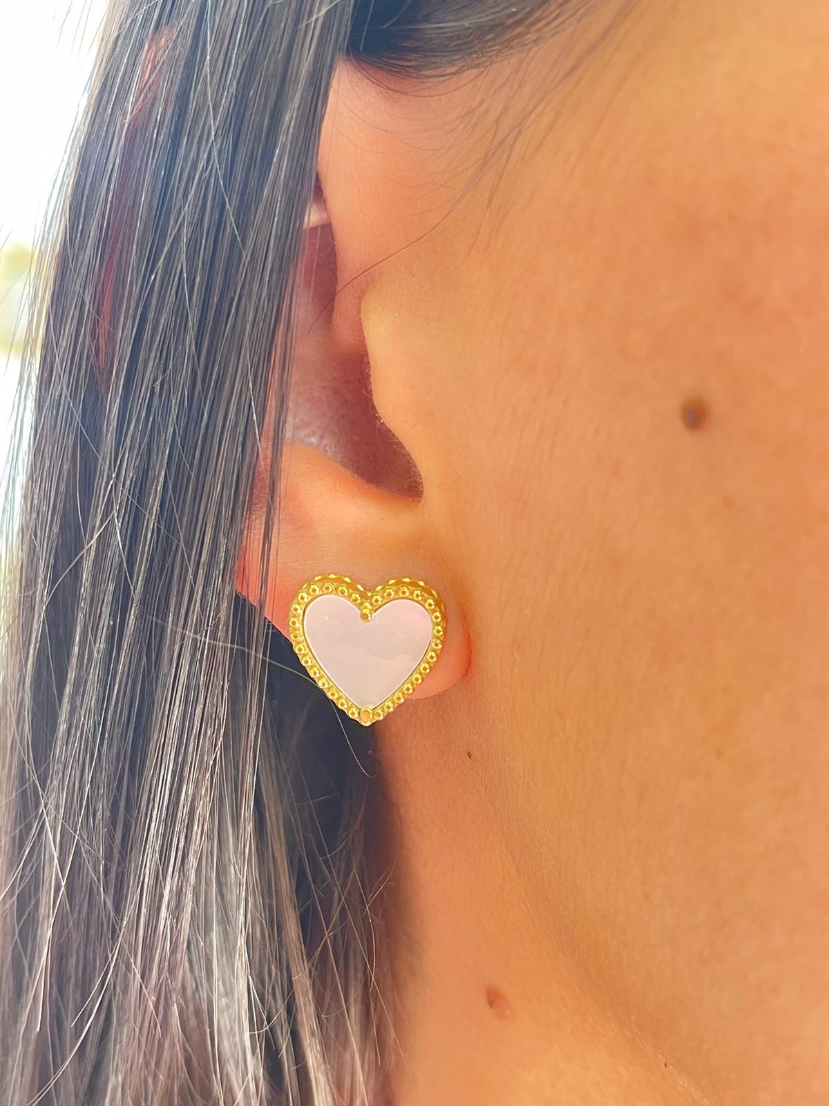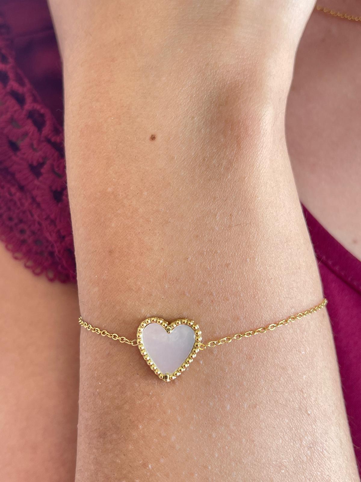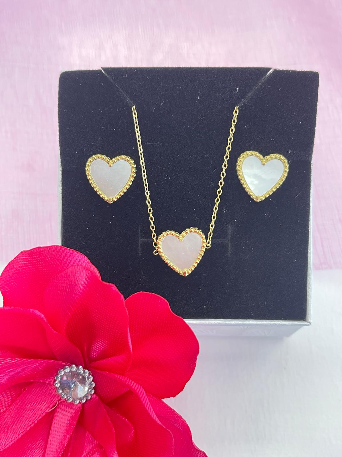 Set cuore di orecchini e bracciale dorati e bianchi in acciaio inox304L, ipoallergenico.