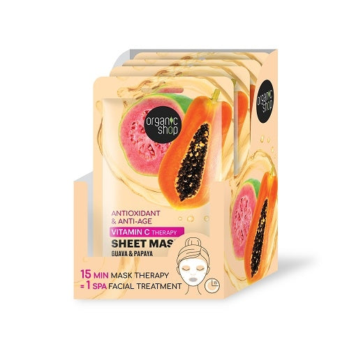 MASCHERA VISO ANTIOSSIDANTE E ANTI-AGE pensata per donare alla tua pelle un bagliore luminoso e un effetto levigante. Contiene GUAVA BIO e PAPAYA fonti naturali di vitamina C per un effetto anti age e un aspetto della pelle sano e vellutato.