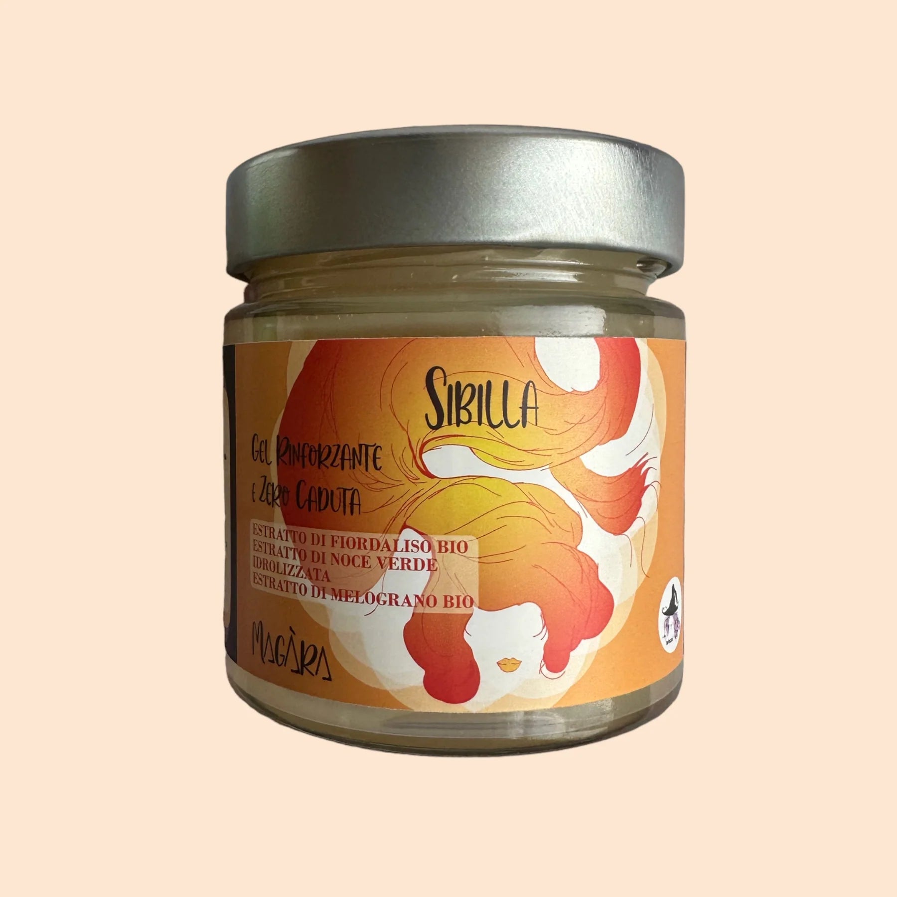Sibilla e le sue magie sono racchiuse in questo gel usato come coadiuvante nel trattamento della caduta temporanea dei capelli. L’acqua di riso ed il pantenolo sono idratanti, il succo di aloe vera è lenitivo, l’estratto di melograno è purificante e rigenerante, l’estratto di fiordaliso è rinforzante. L’estratto di luppolo è un coadiuvante nel trattamento per la crescita dei capelli, l’estratto di noce verde idrolizzata è antiossidante e dona luminosità al capello.